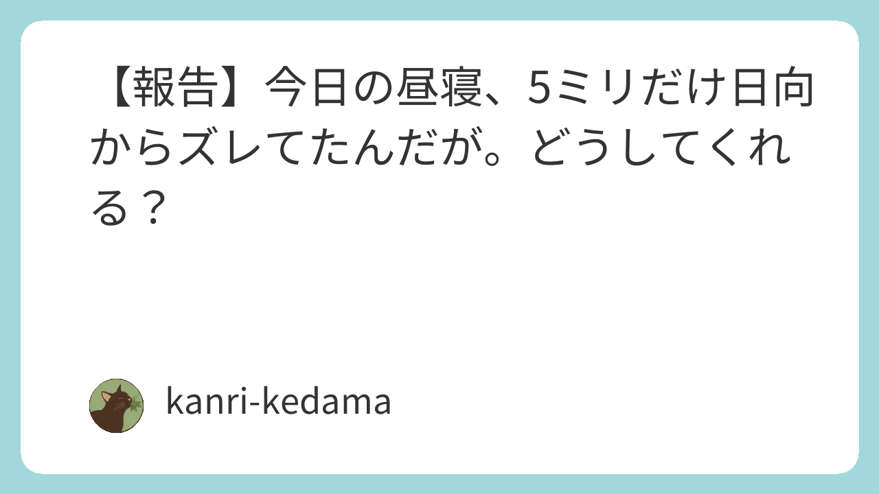 【報告】今日の昼寝、5ミリだけ日向からズレてたんだが。どうしてくれる?