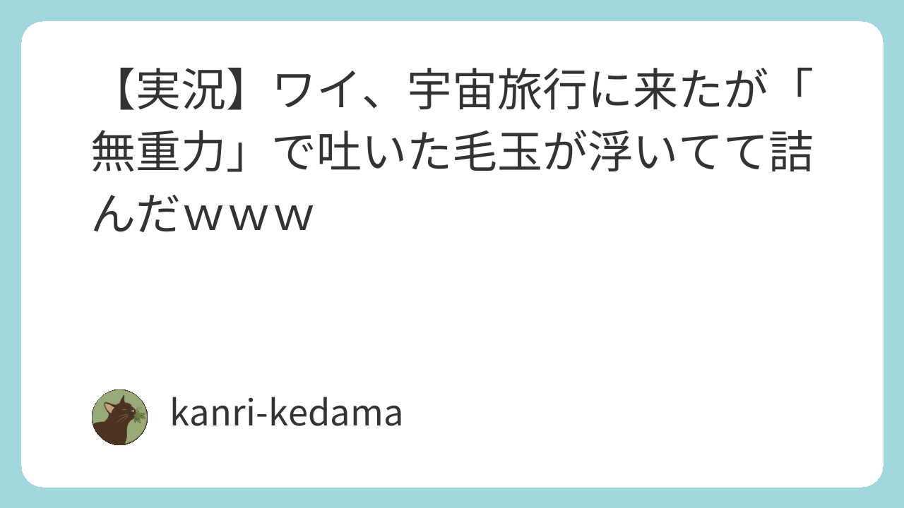 無重力空間での毛玉排出とか、人類史上初の快挙やぞw