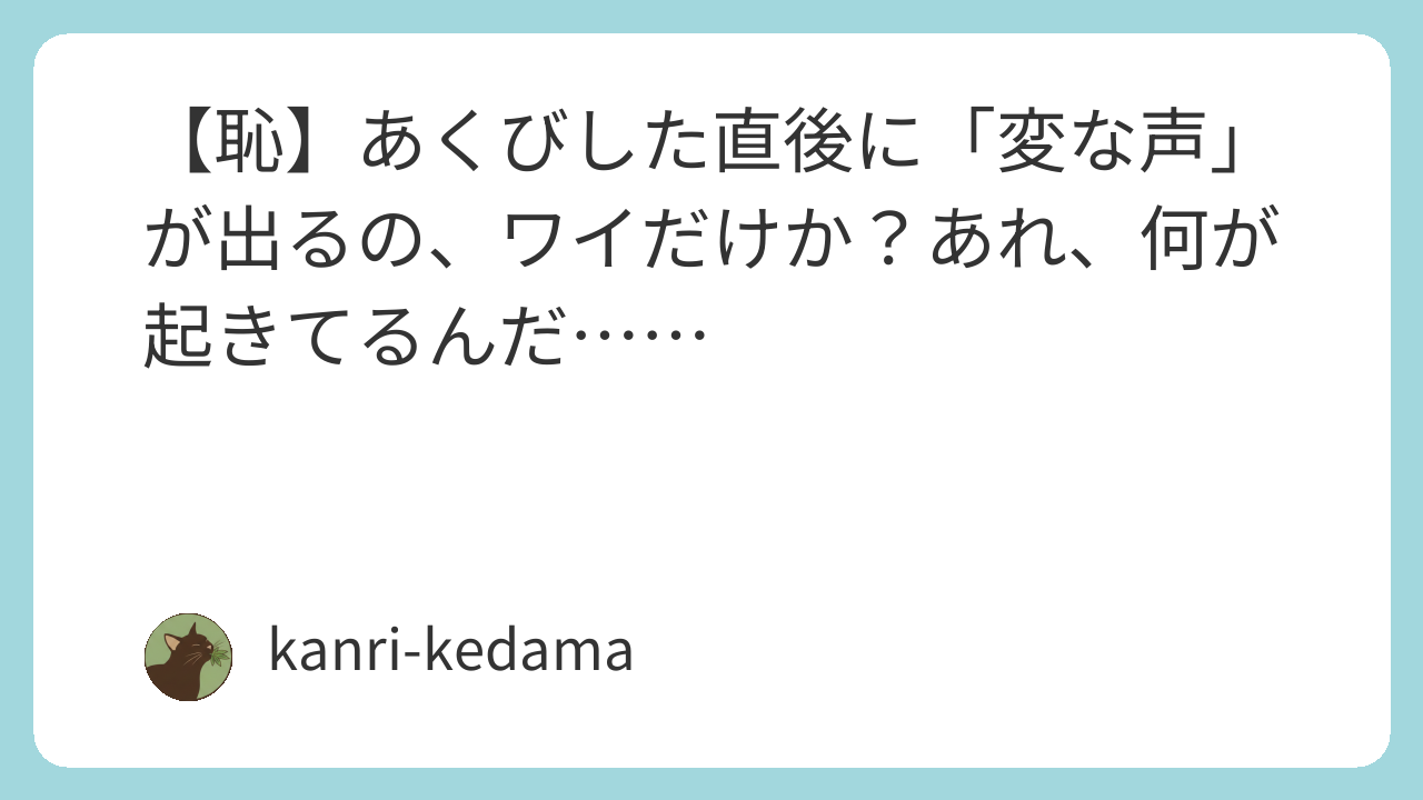 さっき豪快にあくびした瞬間、「アッ…」と裏返ったような変な声が漏れたんだ。
