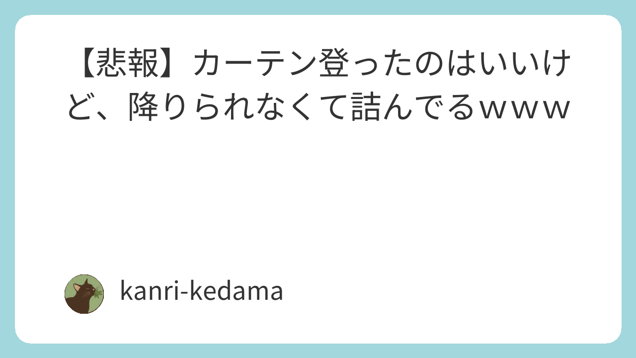 【悲報】カーテン登ったのはいいけど、降りられなくて詰んでるwww