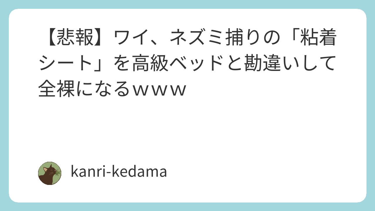 【悲報】ワイ、ネズミ捕りの「粘着シート」を高級ベッドと勘違いして全裸になるwww