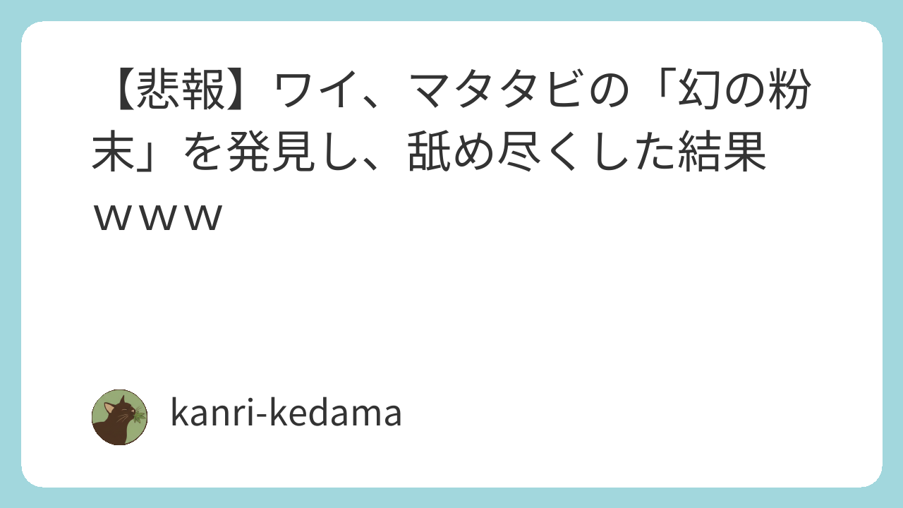 【悲報】ワイ、マタタビの「幻の粉末」を発見し、舐め尽くした結果www