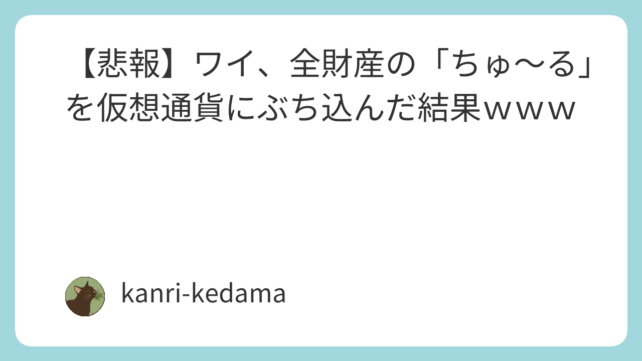 【悲報】ワイ、全財産の「ちゅ〜る」を仮想通貨にぶち込んだ結果www