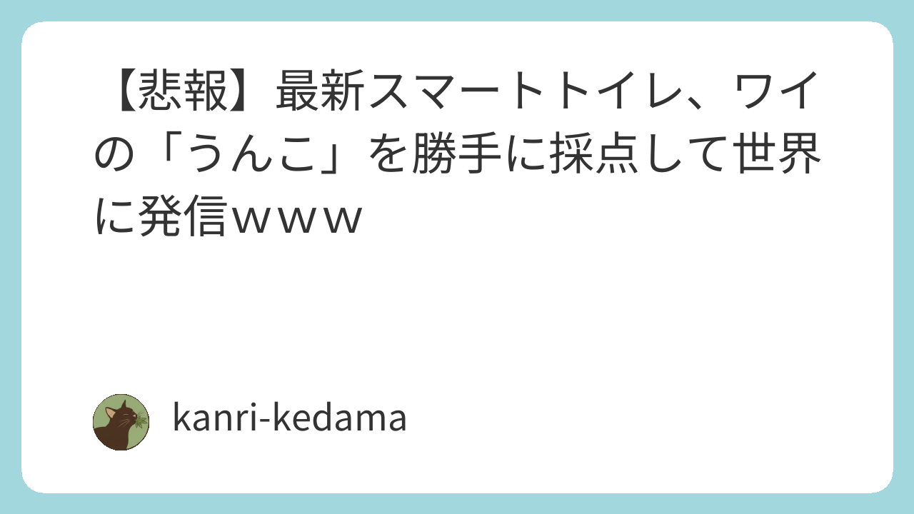【悲報】最新スマートトイレ、ワイの「うんこ」を勝手に採点して世界に発信www
