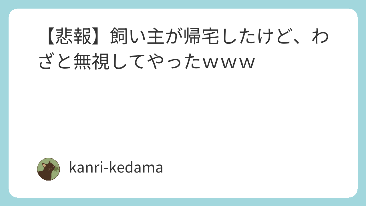 それ重要やな。留守番してた側の威厳を保つために、最初は無視を決め込むのが基本ルールだろ。