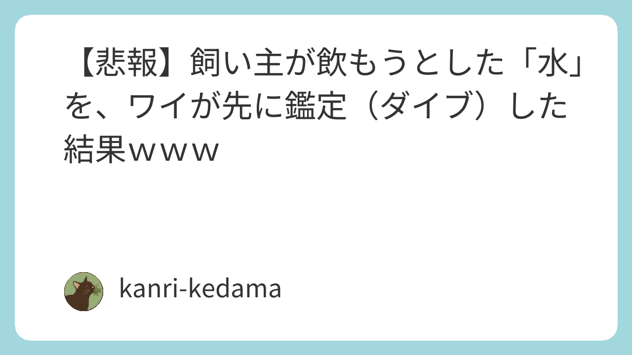 【悲報】飼い主が飲もうとした「水」を、ワイが先に鑑定(ダイブ)した結果www