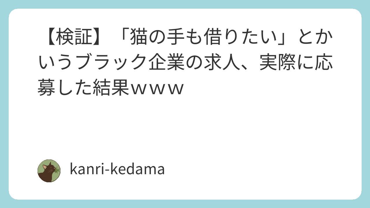 【検証】「猫の手も借りたい」とかいうブラック企業の求人、実際に応募した結果www