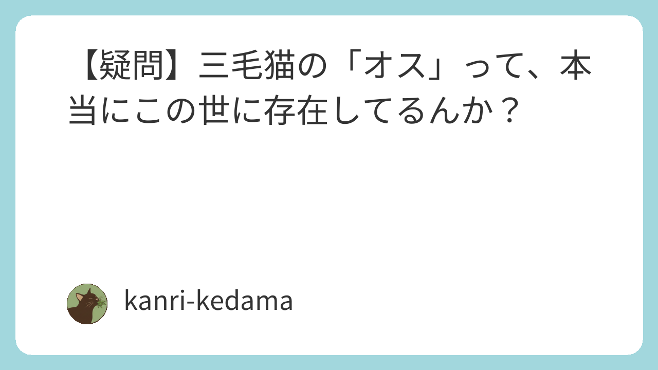 【疑問】三毛猫の「オス」って、本当にこの世に存在してるんか?