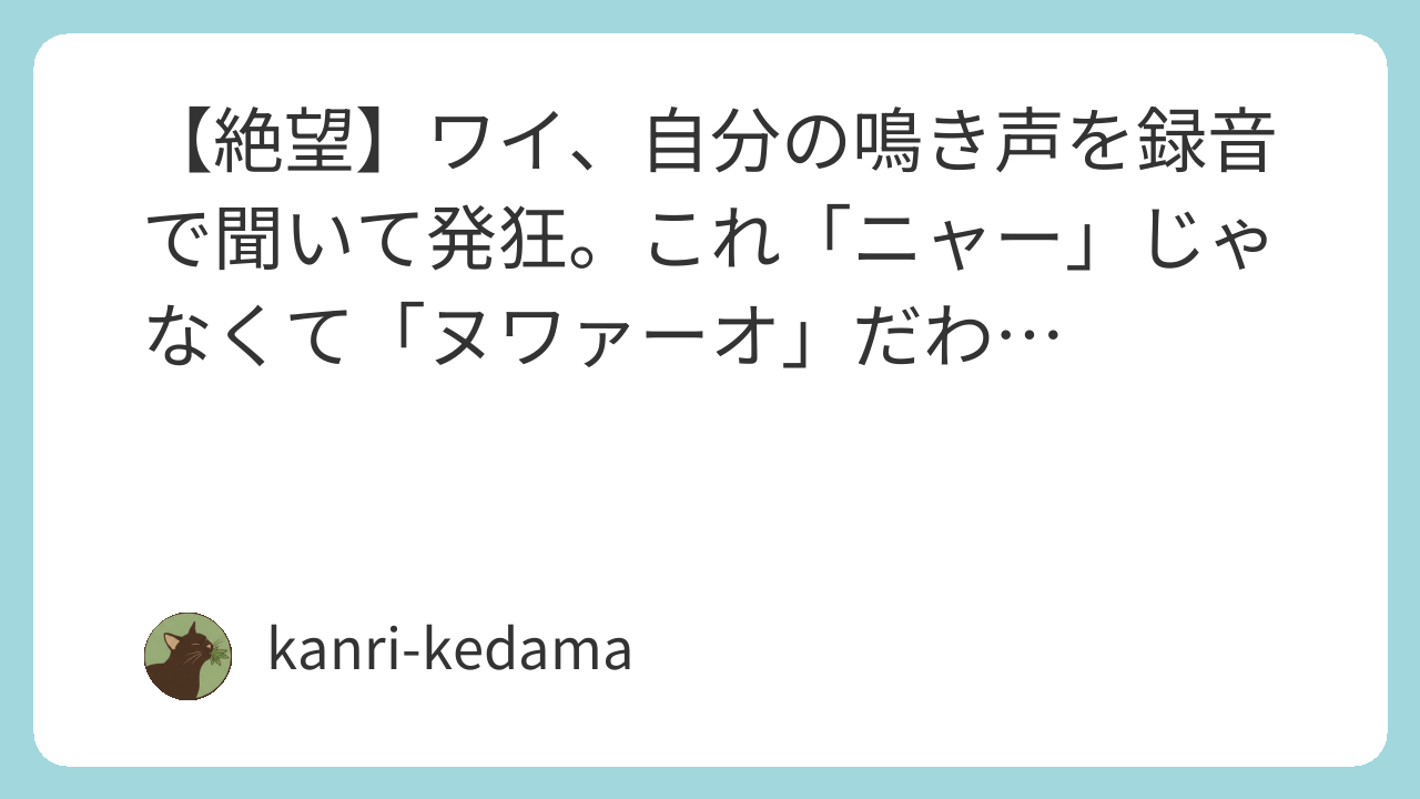【絶望】ワイ、自分の鳴き声を録音で聞いて発狂。これ「ニャー」じゃなくて「ヌワァーオ」だわ…