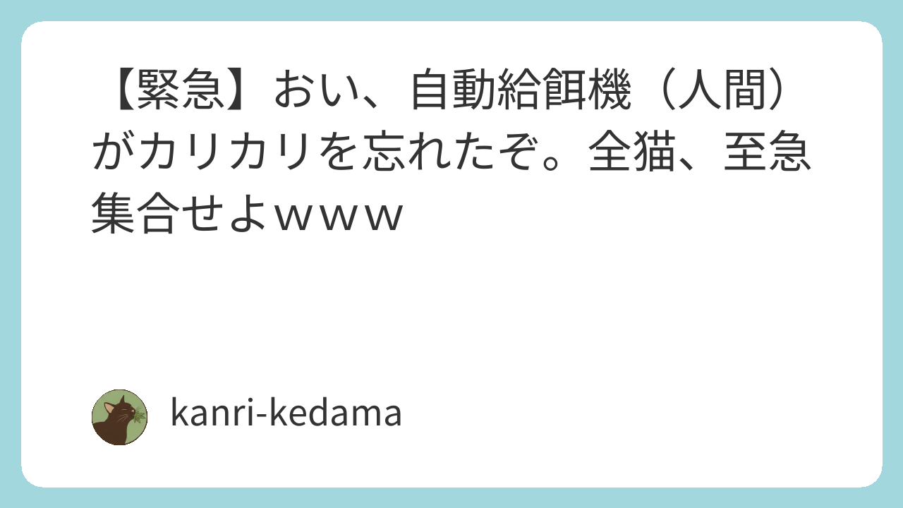 【緊急】おい、自動給餌機(人間)がカリカリを忘れたぞ。全猫、至急集合せよwww