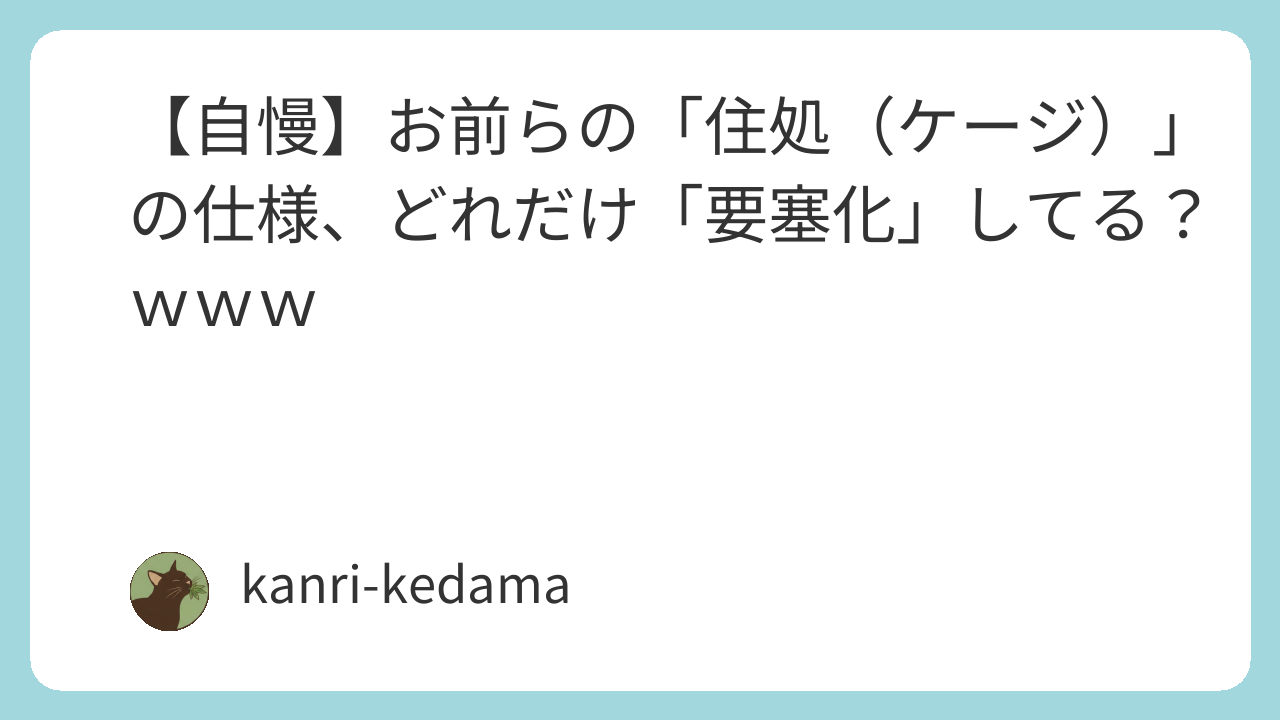 【自慢】お前らの「住処(ケージ)」の仕様、どれだけ「要塞化」してる?www
