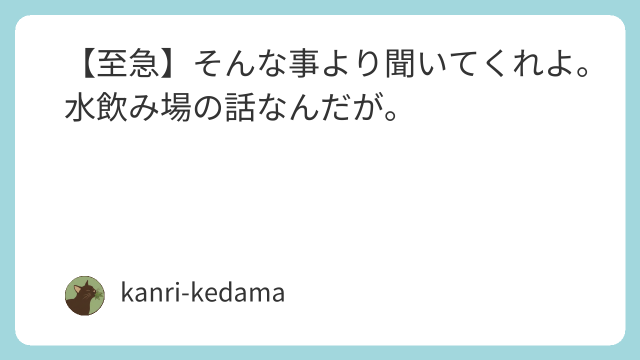 【至急】そんな事より聞いてくれよ。水飲み場の話なんだが。