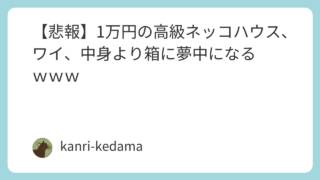 未分類 【悲報】1万円の高級ネッコハウス、ワイ、中身より箱に夢中になるwww