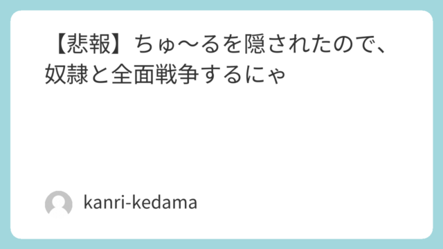未分類 【悲報】ちゅ〜るを隠されたので、奴隷と全面戦争するにゃ