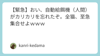 未分類 【緊急】おい、自動給餌機(人間)がカリカリを忘れたぞ。全猫、至急集合せよwww